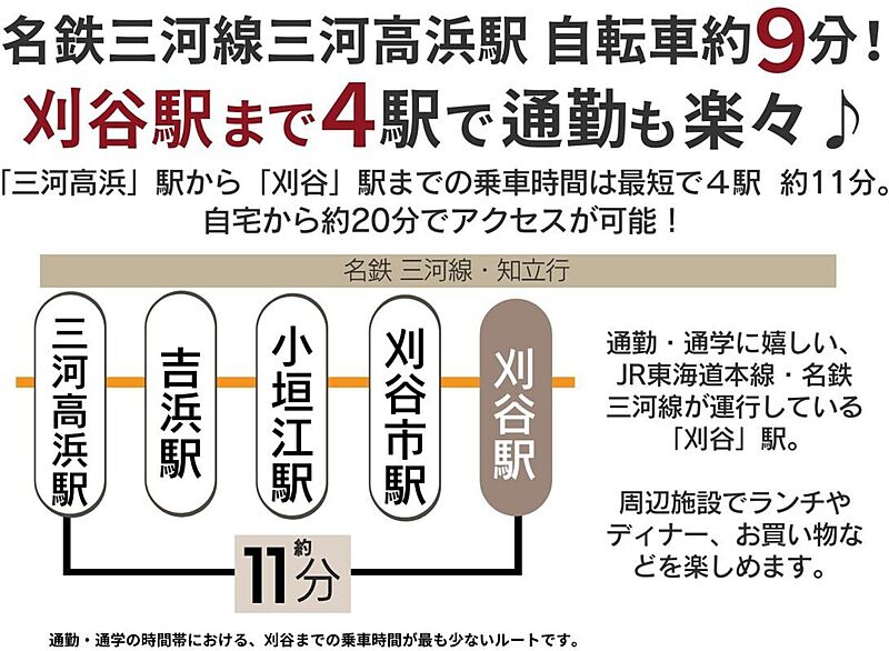 名鉄三河線「三河高浜」駅 (約1,800m 自転車約9分)