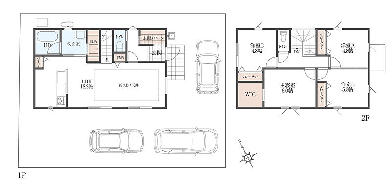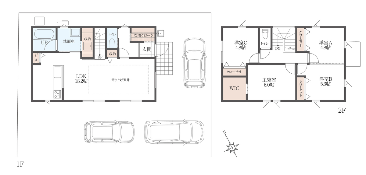 \敷地45坪超!南西向きの2階建×新築「4LDK」3台駐車可能(車種による)/