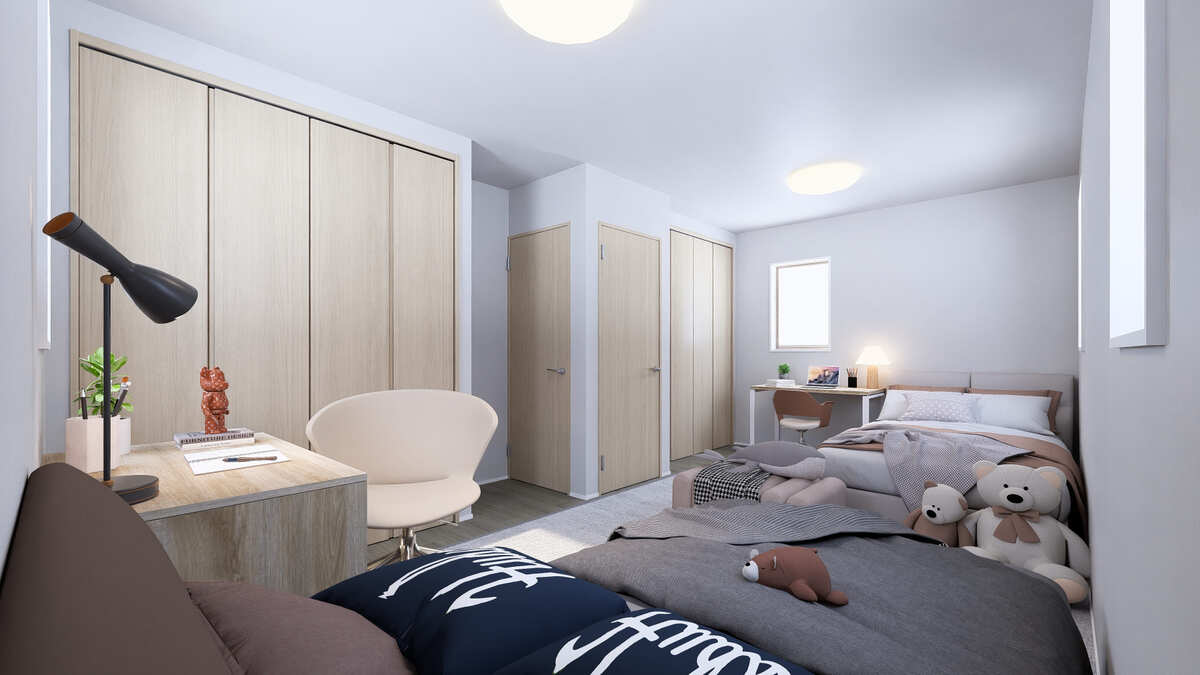 ご家族の成長やライフスタイルの変化に応じて、将来的に壁で仕切ることができる2ドア1ルーム。各空間に収納を備えており、個々の私物を管理することができます。