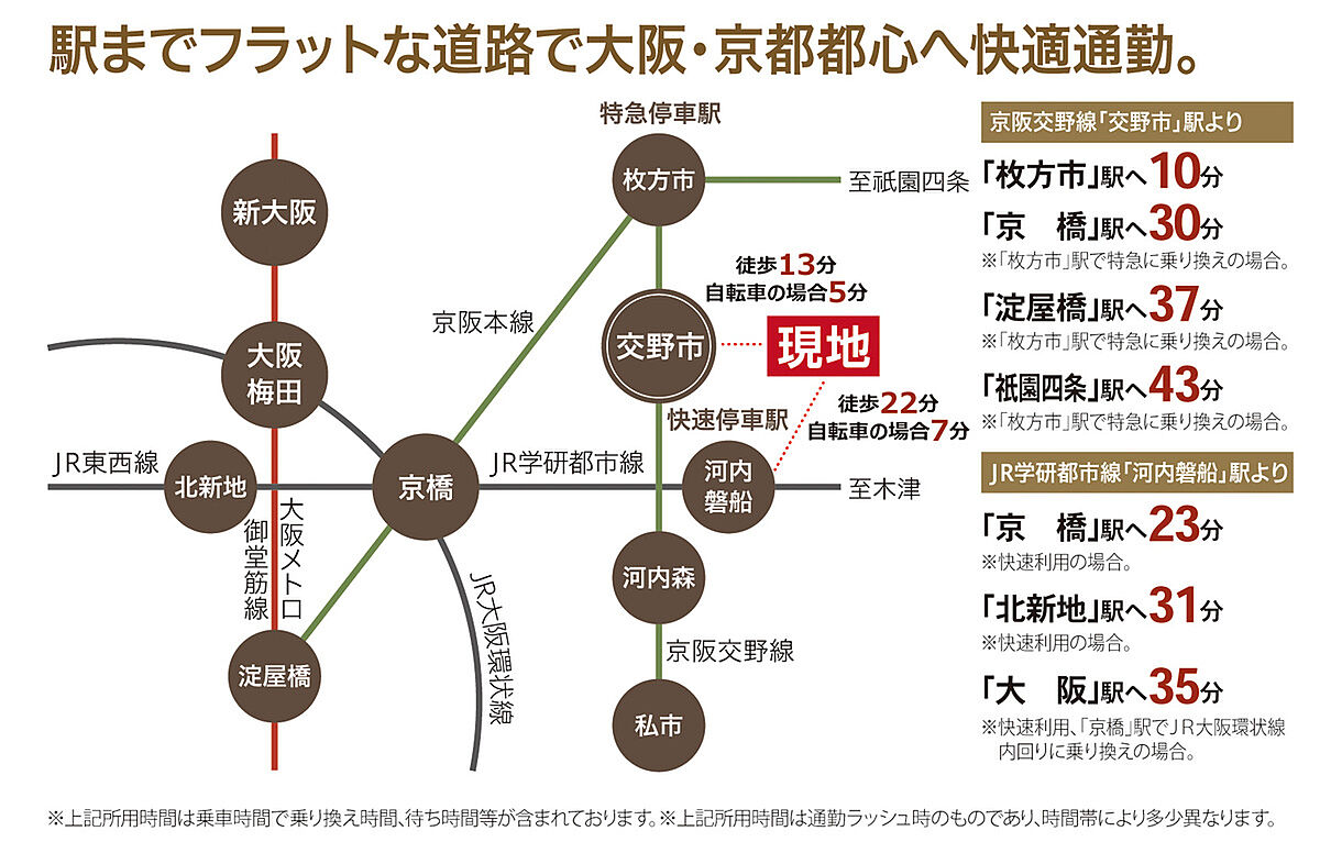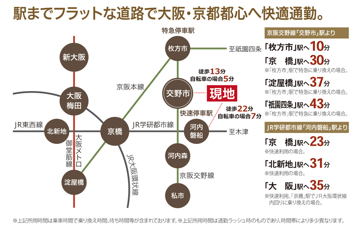 京阪交野線「交野市」駅 徒歩13分 JR片町線(学研都市線)「河内磐船」駅 徒歩22分 |