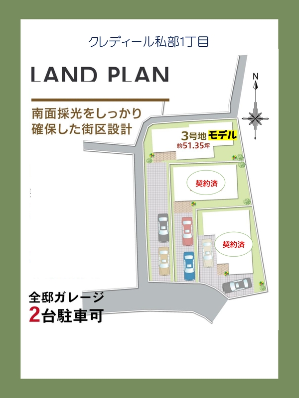 | 駐車場 | 1台 ~ 3台 | 道路の幅員 | 南側4.0m(セットバック含む) |