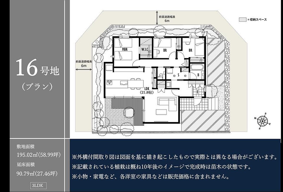 | 駐車場 | - | 道路の幅員 | 道路幅:5.1m~6m/道路幅の備考:(1号地は5.3m・6mに接する/15号地・16号地・20号地は6m・5.1mに接する) |