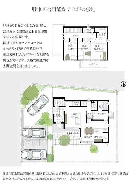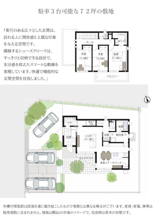 6号地の土地広さは70坪超、建物は30坪超の3LDKの住まいです。