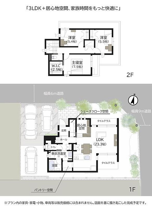 - ※完成予想図やCG合成画像は、門塀・植栽・庭・外観等、実際とは多少異なる場合があります。