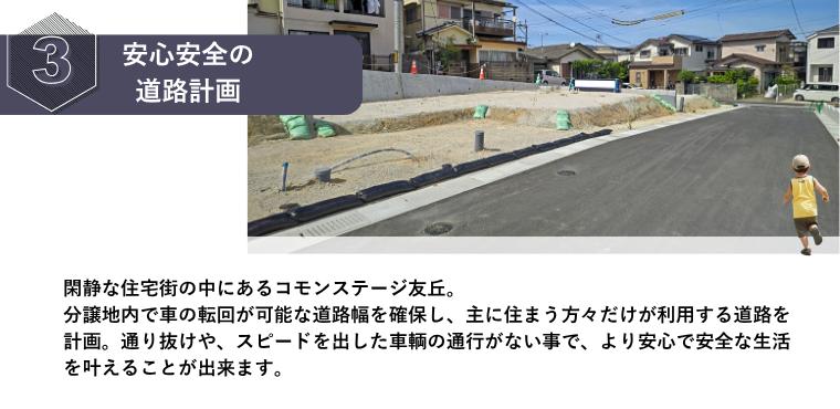 | 備考 | ●1号地には、宅地面積の一部に擁壁部分(約13m2)及び敷地内に都市計画道路の計画(約23m2)が含まれます。●諸費用/水道分担金は、販売価格に含みます。●本分譲地内道路は、建築基準法上の道路(42条1項5号)に該当しますが、道路法による市道認定は受けておりません。(登記名義、福岡市)●当分譲地は、良好なまちなみの形成を図るため「まちなみガイドライン」を定めています。 | ||