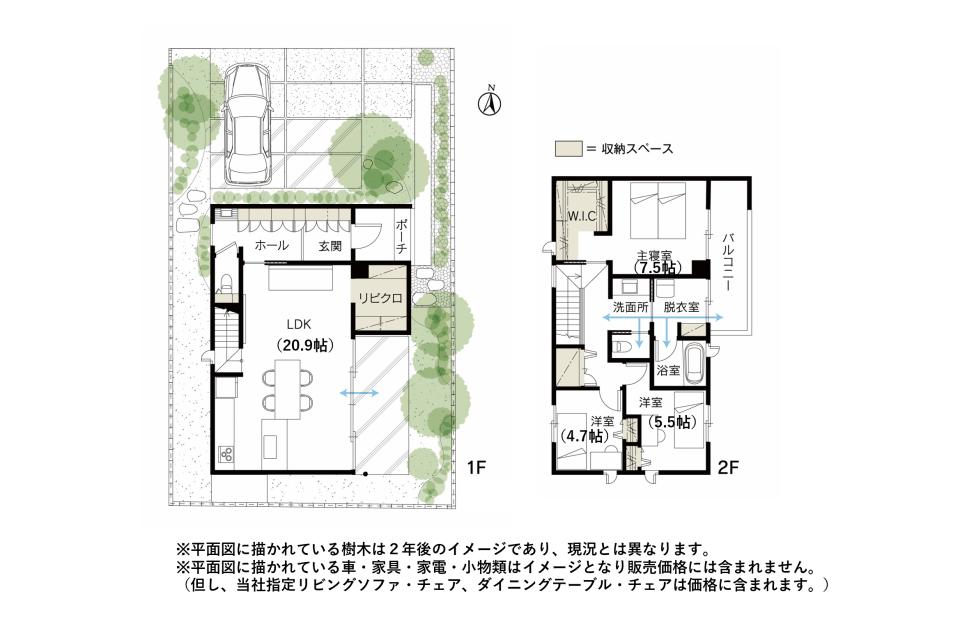 - ※完成予想図やCG合成画像は、門塀・植栽・庭・外観等、実際とは多少異なる場合があります。