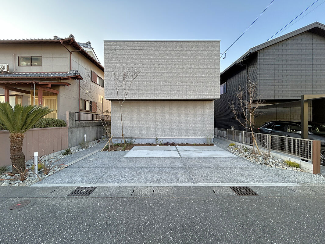 プライバシーに配慮しながらも、通りから目を引くデザイン性の高い住まいです。中に入ると開放的な空間が広がります。