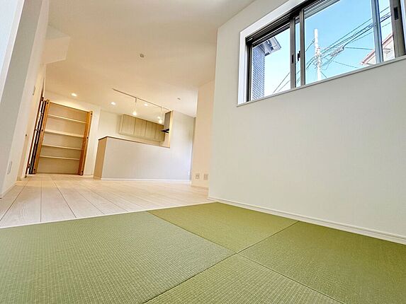リネン庫付きのゆったり洗面スペース、SICとパントリー、全室収納付きLDKつづきのタタミスペースは、家族でゴロゴロ嬉しいスペース家族と紡ぐ時間を大切にできます