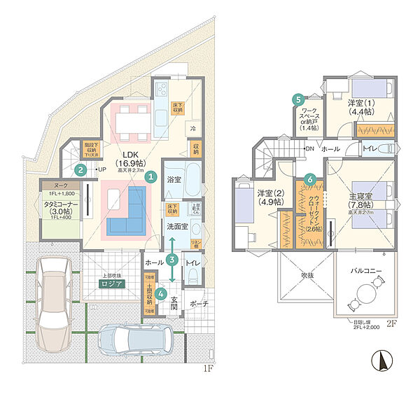 | 駐車場 | 2台 | 道路の幅員 | 6.2~6.8m |