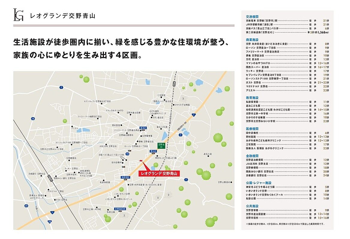 京阪交野線「交野市」駅 徒歩20分 JR片町線(学研都市線)「津田」駅 徒歩20分 JR片町線(学研都市線)「河内磐船」駅 徒歩26分 |