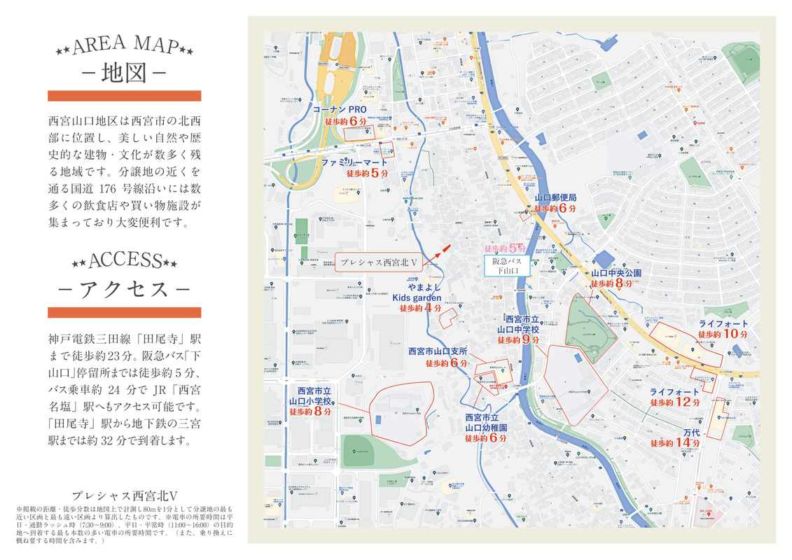 ●物件から阪急バス「下山口」停までは徒歩約5分の距離にあり、西宮名塩や岡場方面へアクセスすることができます。周辺には、買い物施設やご家族でゆったりと過ごすことのできる大きな公園も複数あります!