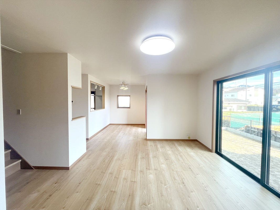 ●20帖以上あるLDKは南向きで陽当たりが良く開放感のある空間。広さに余裕があるため大型のソファやダイニングテーブルを置いても圧迫感がなく自由にレイアウトを楽しむことができます!