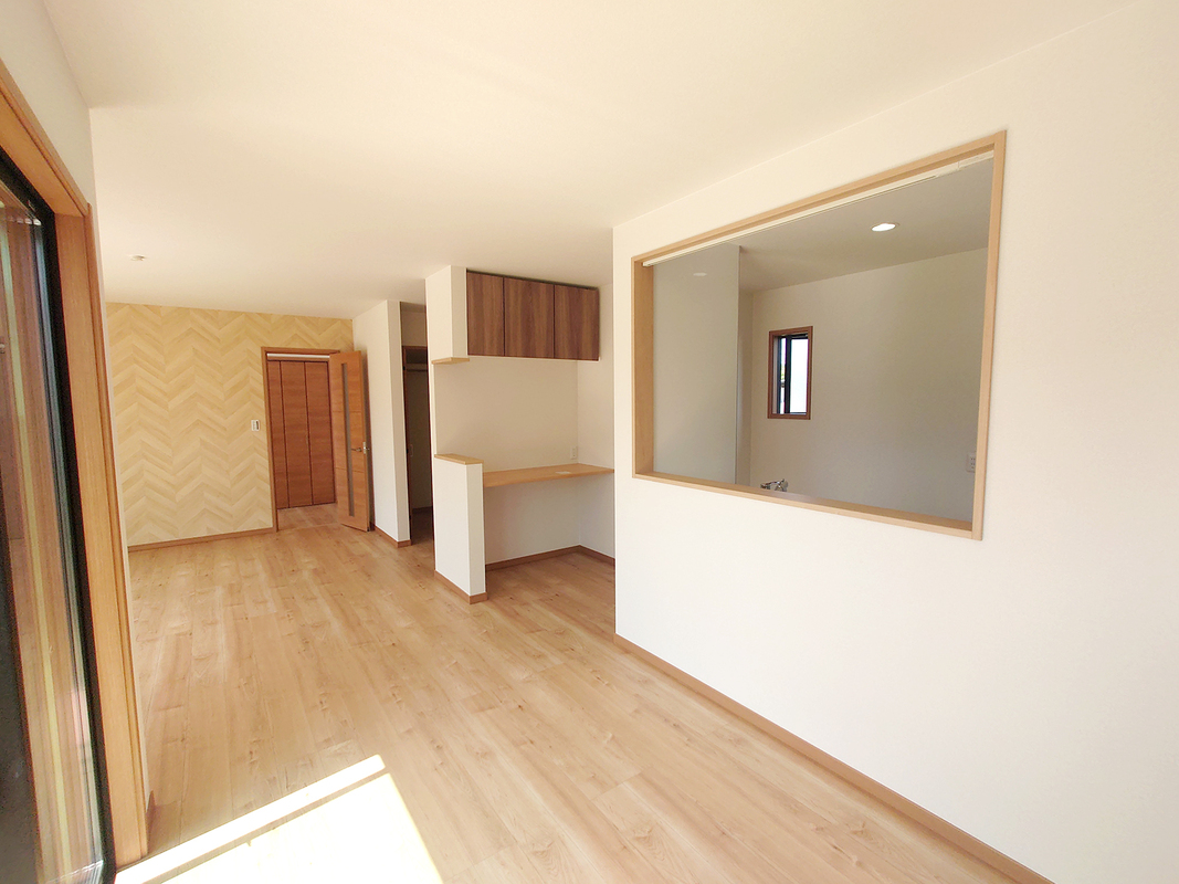 ●キッチンからリビングを見渡すことができ、会話を楽しみながら料理をすることができます。キッチンのすぐ隣にはパントリーと家事カウンターが設けられており家事効率がUPします。