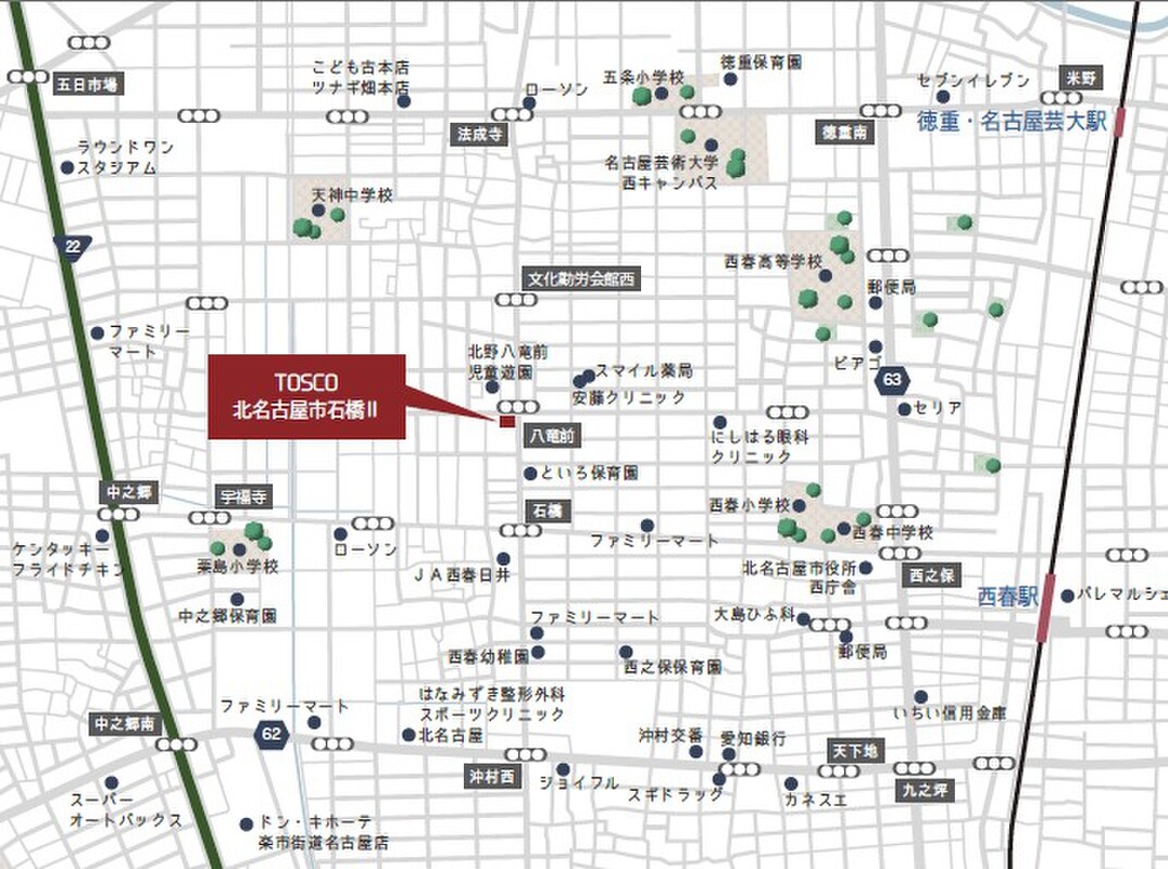 名鉄犬山線「西春」駅 徒歩24分 JR東海道本線「稲沢」駅 徒歩48分 |
