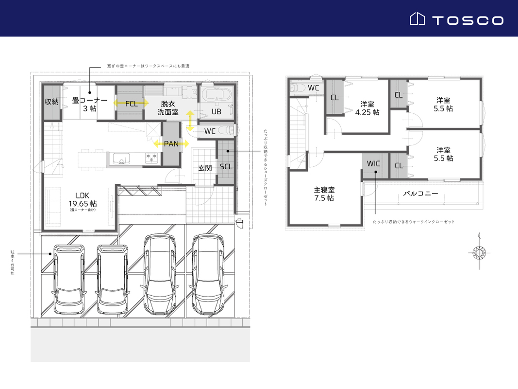 新築一戸建て 【TOSCO】一宮市開明/高~い天井/収納充実・4SLDKの広い家