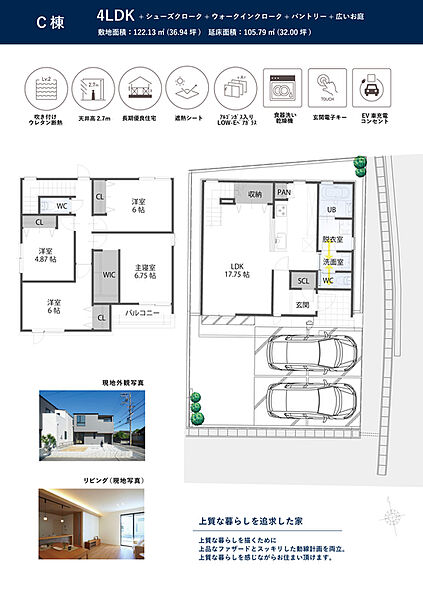 | 建物面積 | 105.79m2 | 土地面積 | 122.13m2(C棟) |