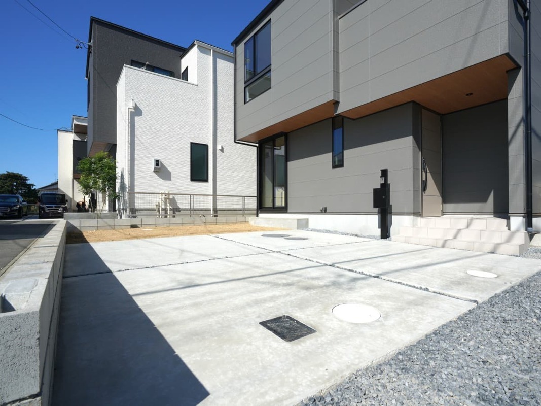 ■長期優良住宅 ■地震に強い!耐震等級3■断熱材と遮熱シートの二重断熱構造■駐車場並列2台駐車可能■スタイリッシュな印象の「外観」■LDK電動シャッター採用!