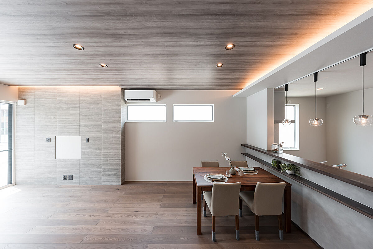 TOSCOの家はリビング天井高2.6m。一般的には2.4mが多いなか、約20cm高く設定しています。高い天井の空間では、開放感を得られたり、創造的な思考が広がる効果があると言われています