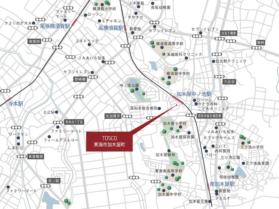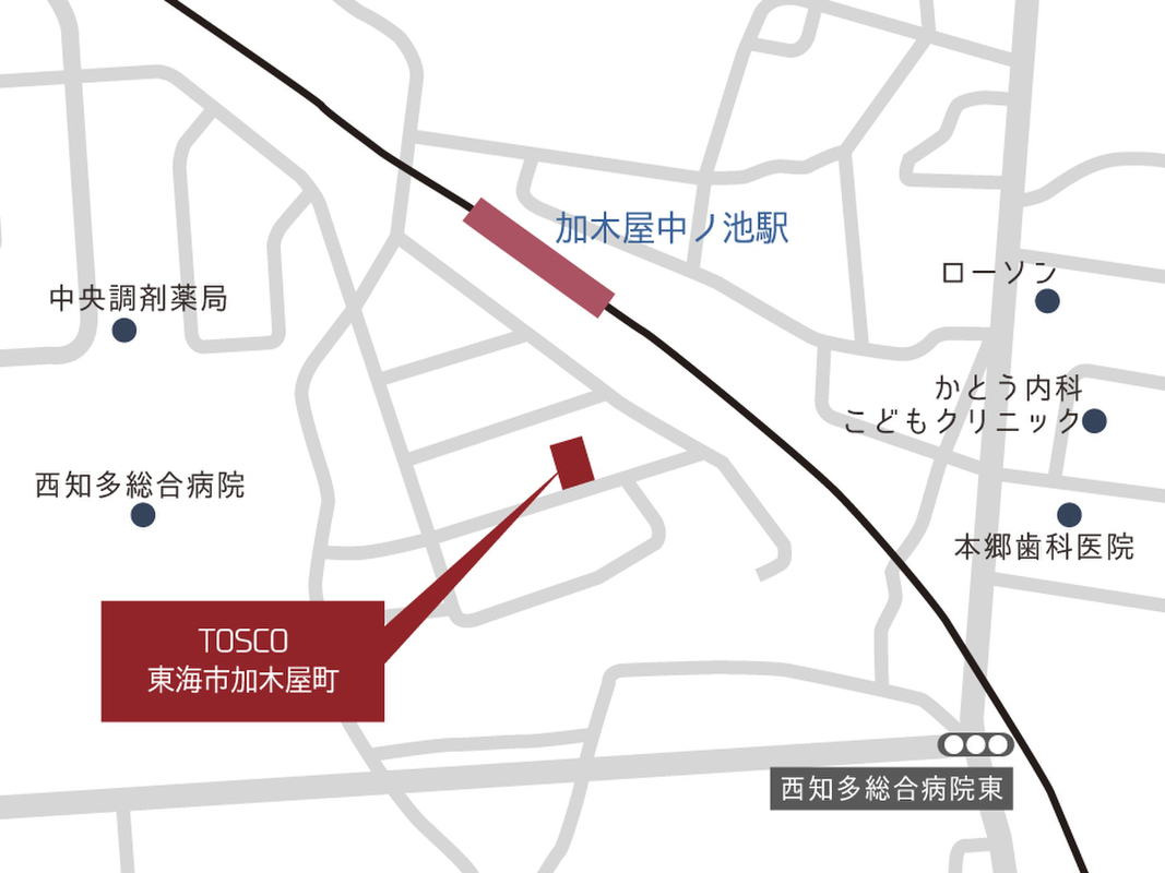 名鉄河和線「加木屋中ノ池」駅 徒歩3分 西知多総合病院 徒歩9分 |