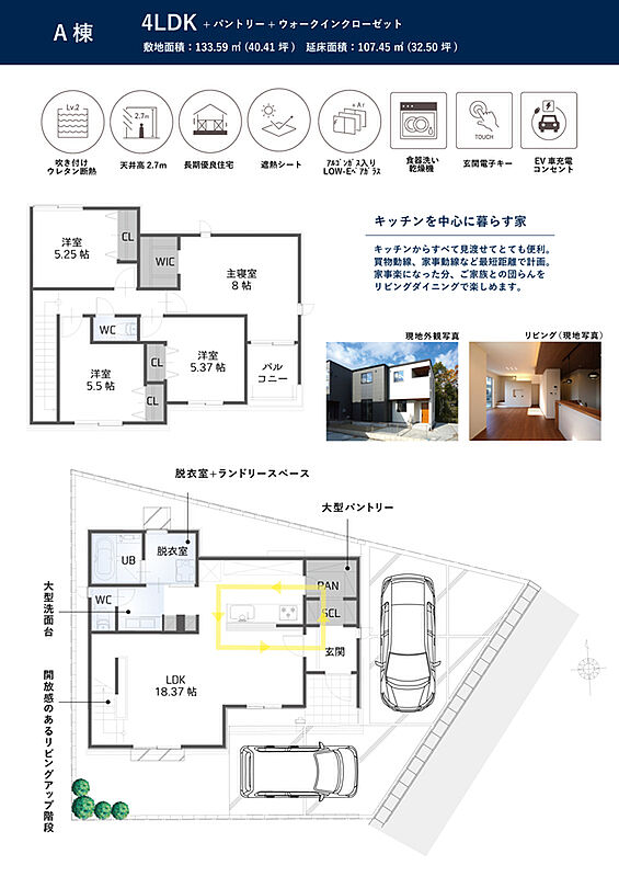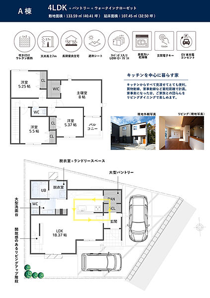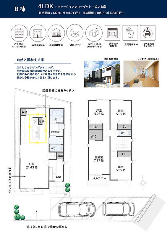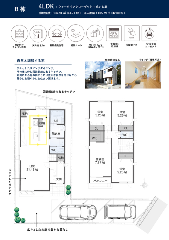 | 建物面積 | 105.79m2(B棟)・107.45m2(A棟) | 土地面積 | 133.59m2(A棟)・137.91m2(B棟) |
