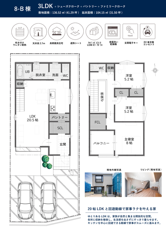 | 建物面積 | 104.15m2 | 土地面積 | 136.52m2 |