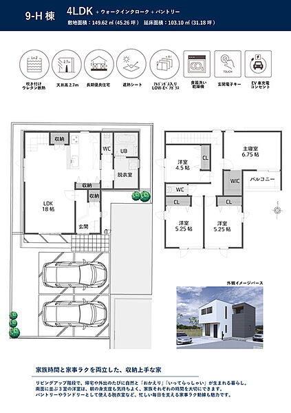| 建物面積 | 106.51m2(G棟)、103.10m2(H棟) | 土地面積 | 140.73m2(G棟)、149.62m2(H棟) |