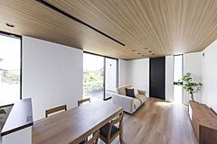 TOSCOの家はリビング天井高2.7mが標準仕様。一般的には2.4mが多いなか、約30cm高く設定しています。高い天井の空間では、開放感を得られます。