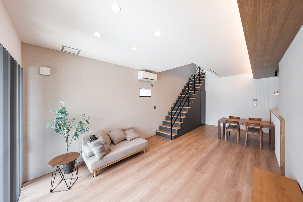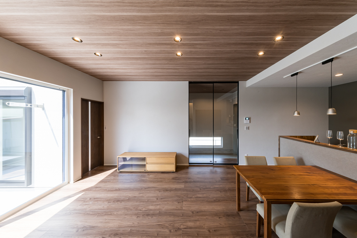 TOSCOの家はリビング天井高2.7mが標準仕様。一般的には2.4mが多いなか、約30cm高く設定しています。高い天井の空間では、開放感を得られます。