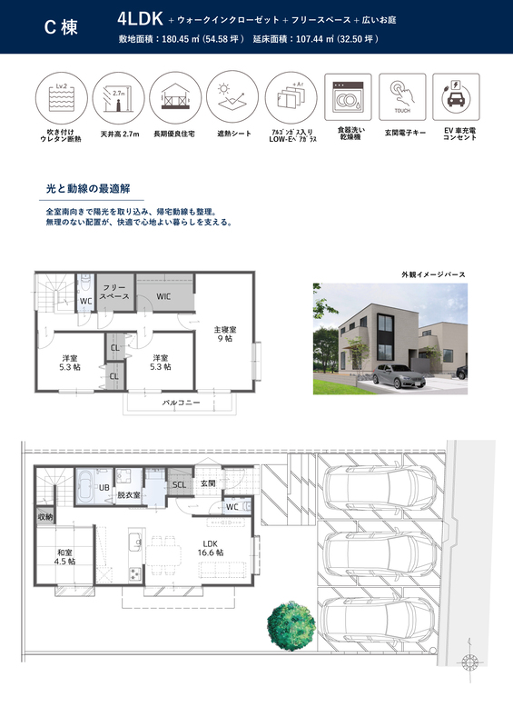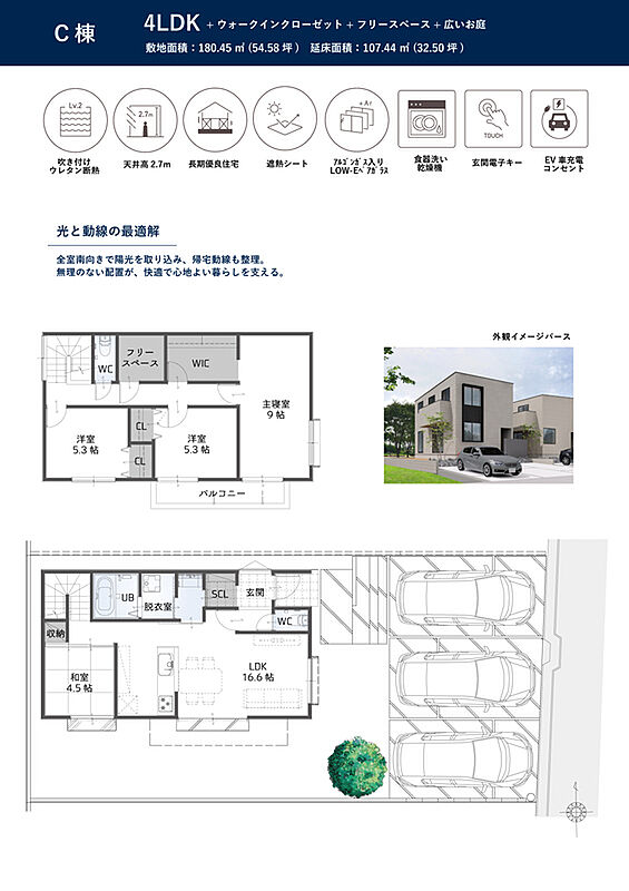 | 建物面積 | 107.44m2(32.50坪) | 土地面積 | 180.45m2(54.58坪) |