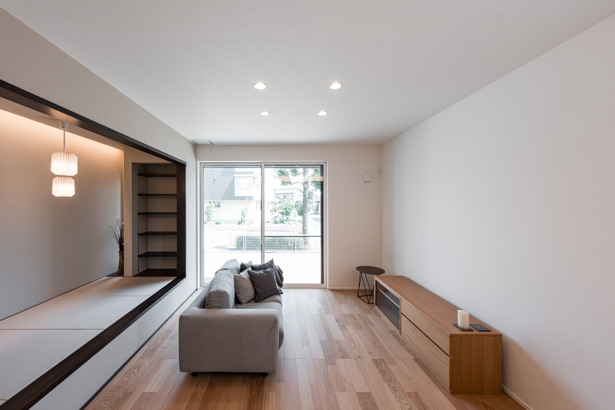 4月完成予定・車並列3台駐車可能・和室と書斎などに使えるフリースペースのある家