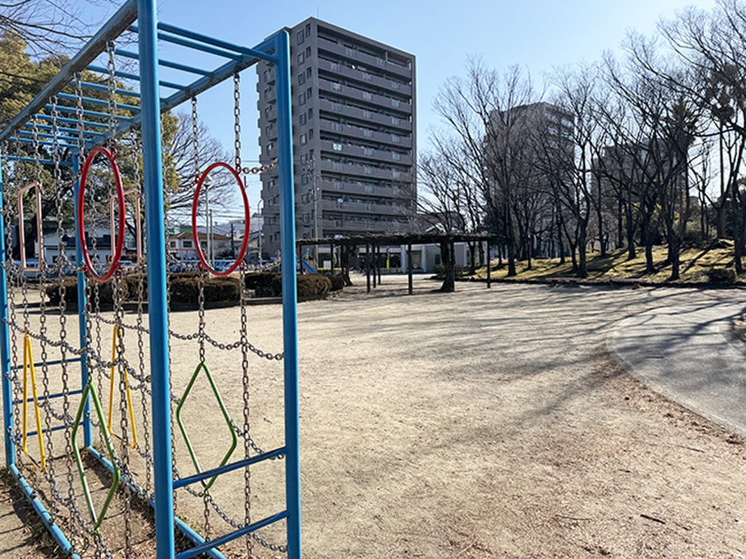 野球場のある広々とした公園です。遊具が設置されており、小さなお子様にもお楽しみいただけます。緑豊かな環境で、虫取り遊びなどもお楽しみいただけそうです。