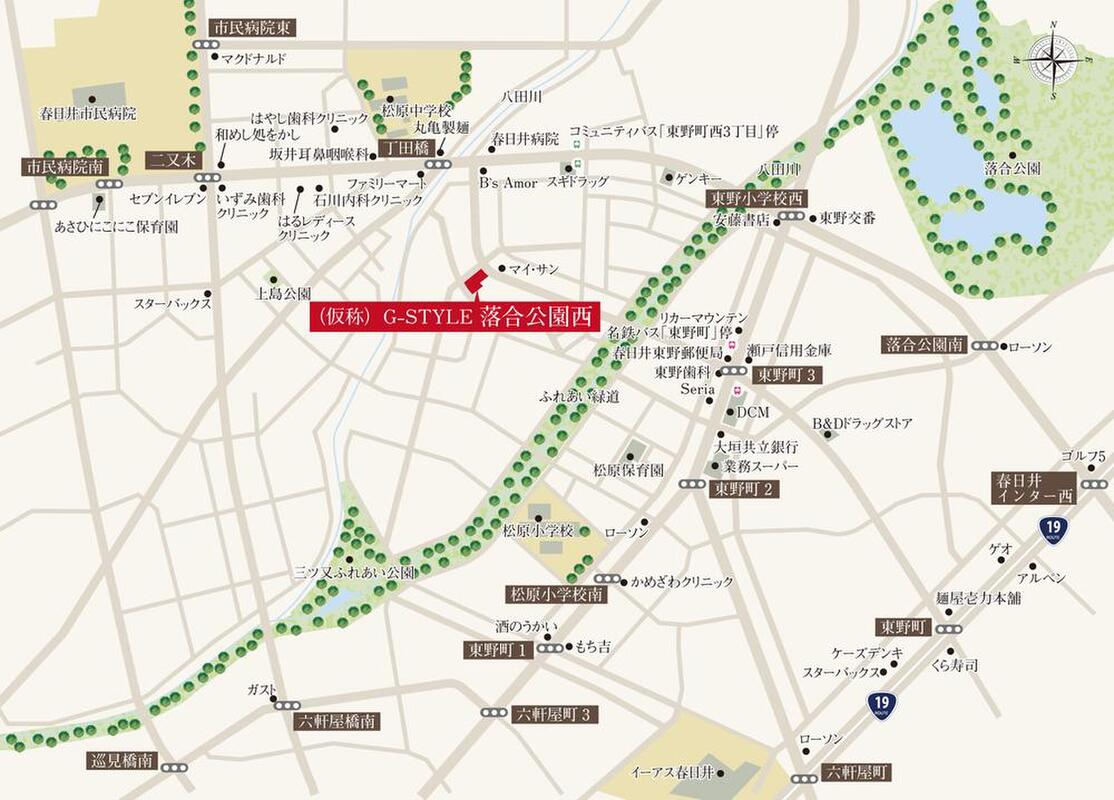・JR中央本線「春日井」駅までバス約9分、名鉄バス「東野町」停まで徒歩8分