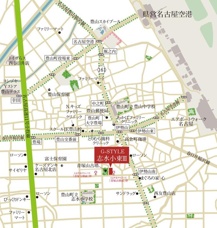 JR東海交通城北線「比良」駅 徒歩32分 豊山タウンバス「青塚古墳前」停 徒歩1分 名鉄小牧線「味美」駅 徒歩32分 自転車4分 |