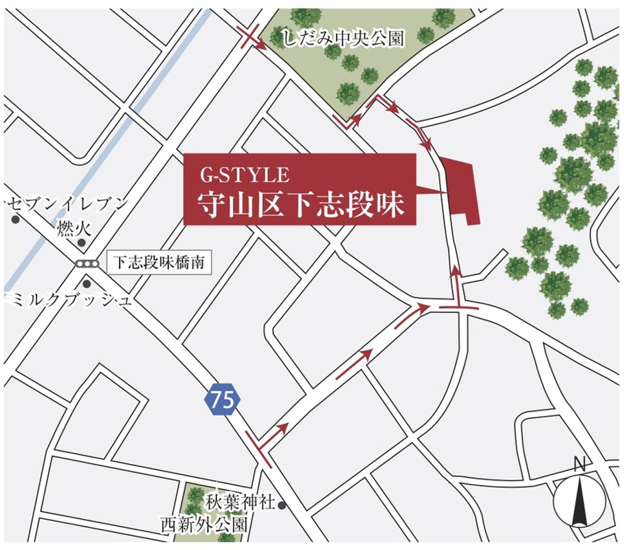 JR中央本線「神領」駅 徒歩19分 ゆとりーとバス「志段味支所北」停 徒歩6分 |