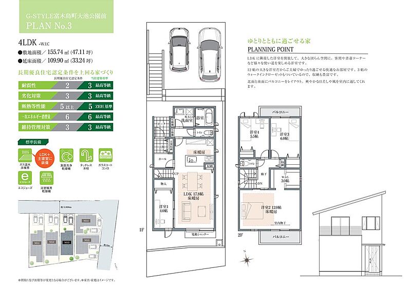【間取り図/NO.3】 間取り 4LDK 価格 4498万円 建物面積 109.90m2(約33.24坪) 土地面積 155.74m2(約47.11坪) -