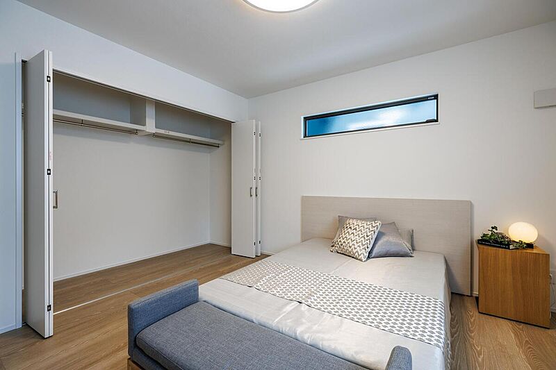 主寝室は床暖房付きなので、冬でも足元から暖かく過ごせます。ホワイト系の明るくシンプルな内装なので、お好みのインテリアに馴染みやすく、お部屋作りが楽しめます。