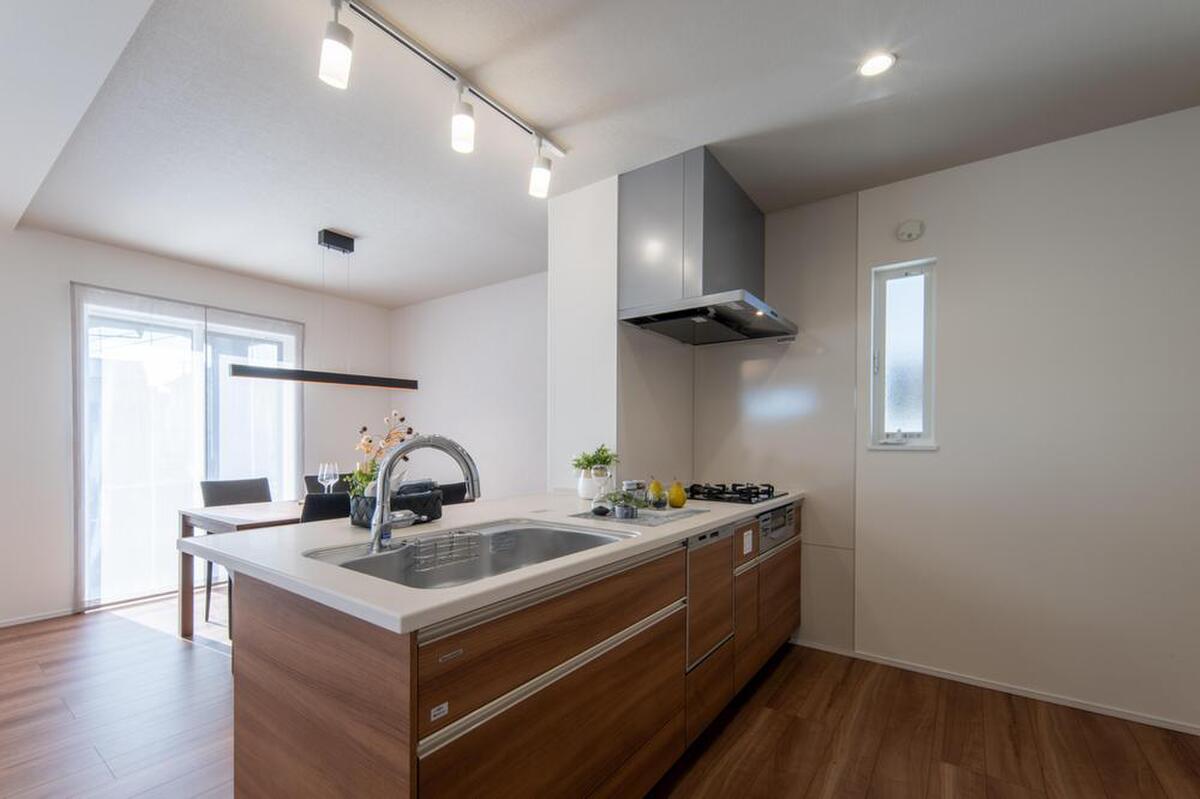手をかざすだけで自動で吐水するタッチレス水栓を採用。調理中に手が汚れていても衛生的に使え、水はねによる周りの汚れも軽減。家事の負担を減らす嬉しい設備です。