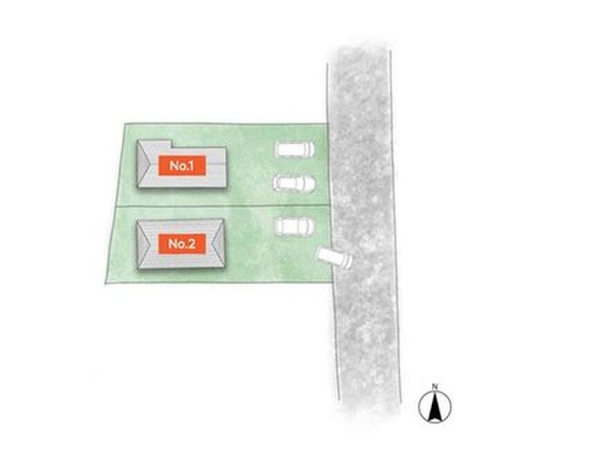 | 駐車場 | 2台 | 道路の幅員 | 道路幅:6m、アスファルト舗装、東側 |
