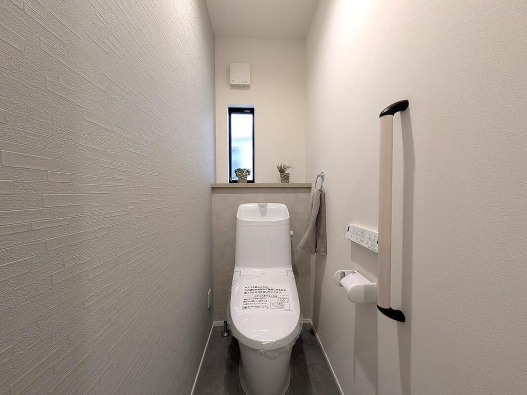 ホワイトを基調としたシンプルな内装です。自然換気が可能な窓付き。使用後すぐに手が洗え衛生的です。立ち上がりをサポートする手すりを設置しています。各階にトイレを設置していますので、朝の混み合う時間帯や来客時にも、気兼ねなくご使用いただけます。