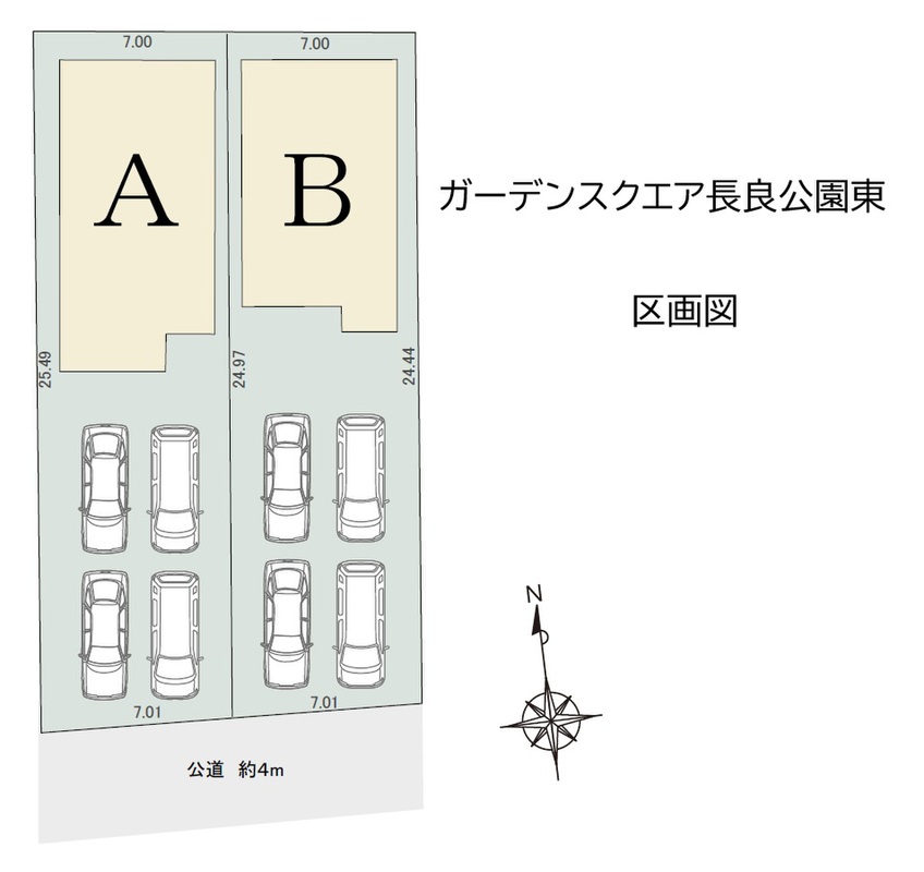 | 駐車場 | 4台 | 道路の幅員 | 南側3.85m (セットバック後4m) |