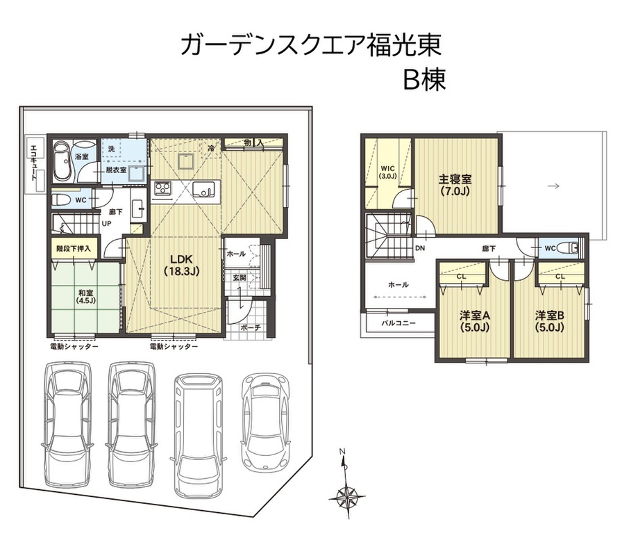 ・南向き、日当たり良好、閑静な住宅街、駐車スペース4台分