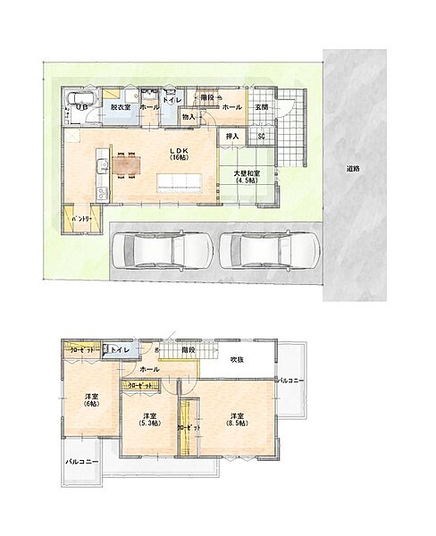 - ※完成予想図やCG合成画像は、門塀・植栽・庭・外観等、実際とは多少異なる場合があります。