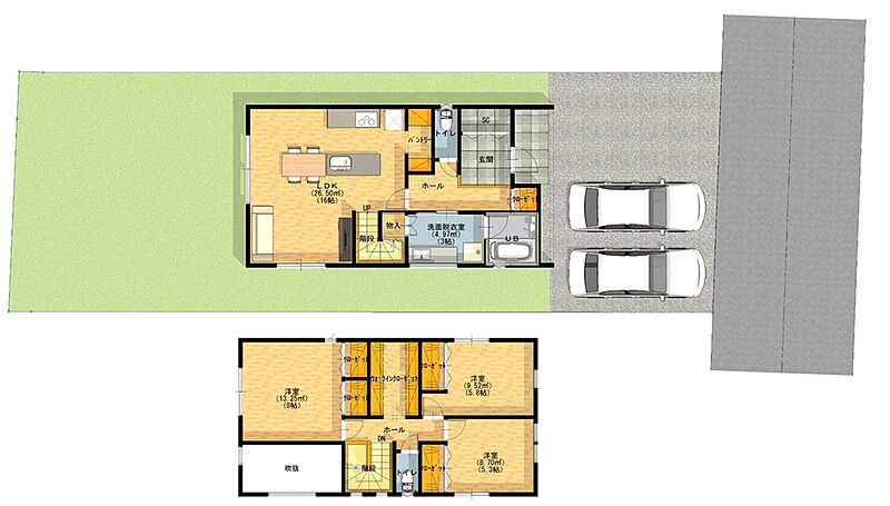 - ※完成予想図やCG合成画像は、門塀・植栽・庭・外観等、実際とは多少異なる場合があります。