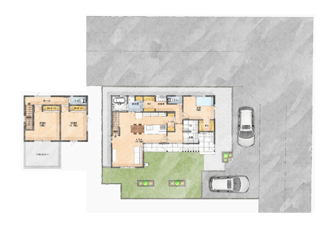 - ※完成予想図やCG合成画像は、門塀・植栽・庭・外観等、実際とは多少異なる場合があります。