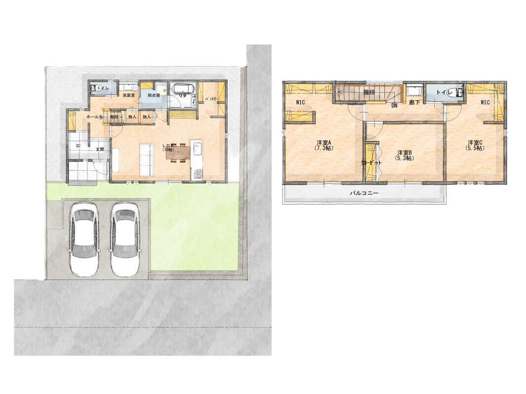 - ※完成予想図やCG合成画像は、門塀・植栽・庭・外観等、実際とは多少異なる場合があります。