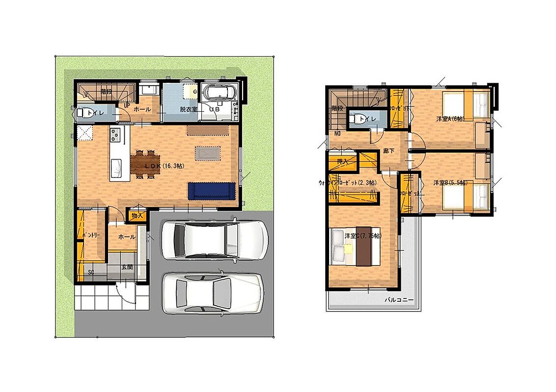 - ※完成予想図やCG合成画像は、門塀・植栽・庭・外観等、実際とは多少異なる場合があります。