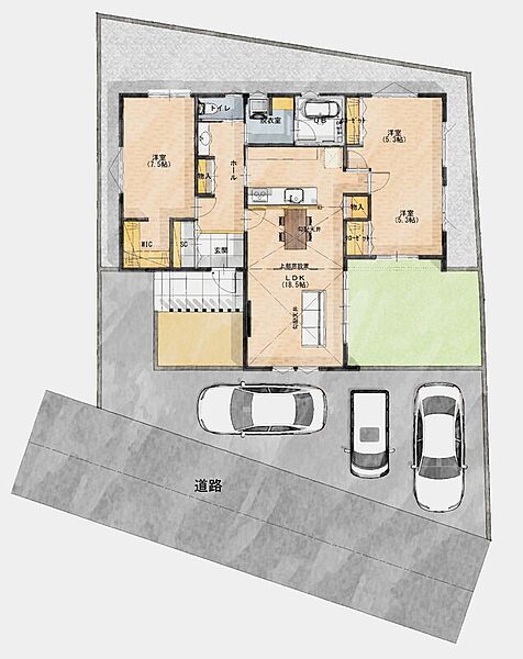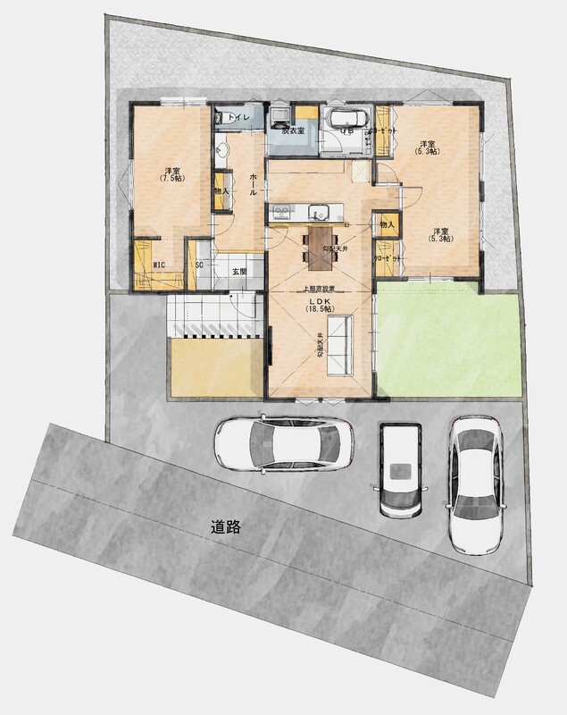 - ※完成予想図やCG合成画像は、門塀・植栽・庭・外観等、実際とは多少異なる場合があります。