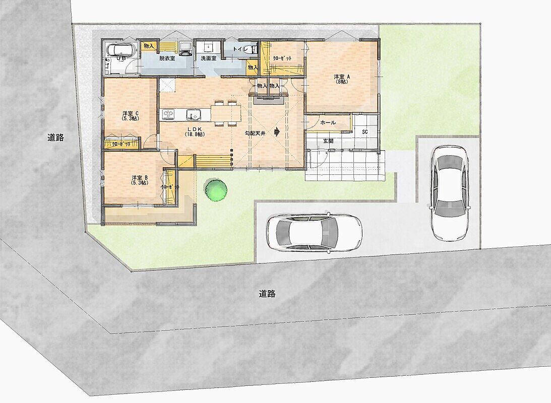 - ※完成予想図やCG合成画像は、門塀・植栽・庭・外観等、実際とは多少異なる場合があります。
