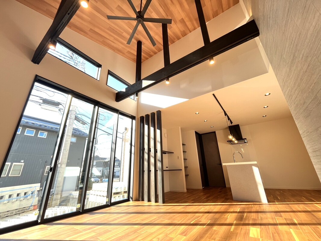 木のぬくもりと開放感が心地良い、梁見せ天井のLDK