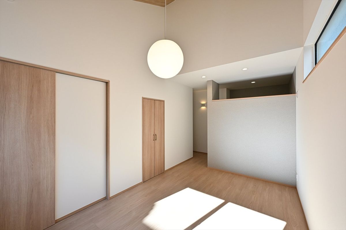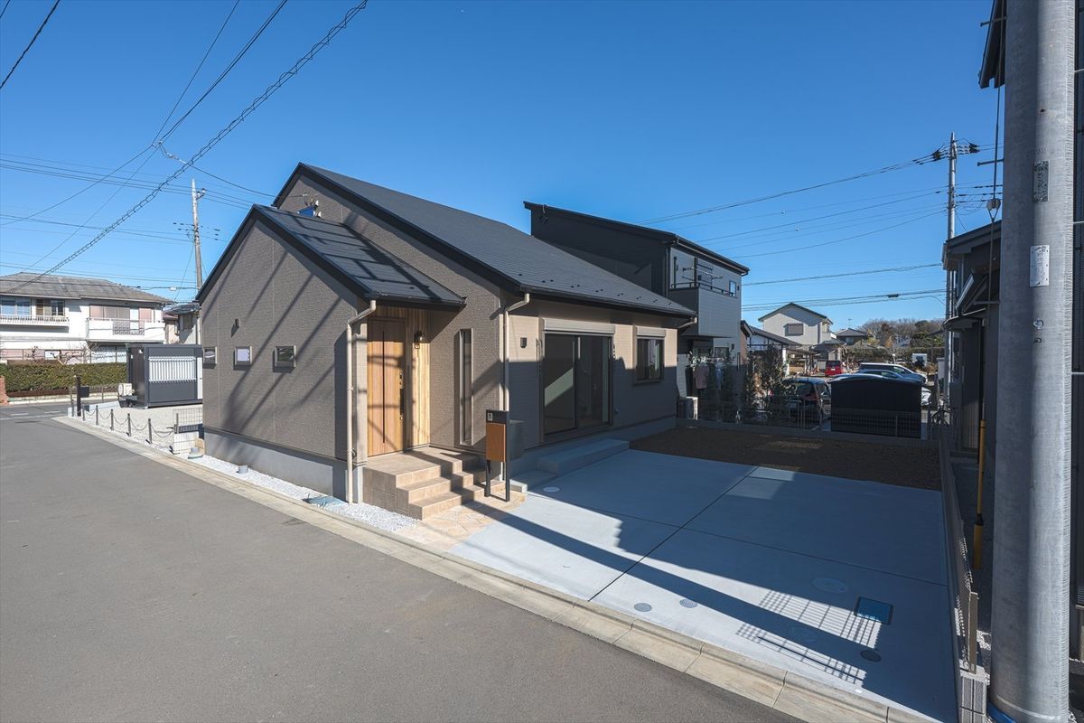 - 生活のすべてが1階で完結する。将来を見据えた住まい。2階には帰省する子供達や趣味のスペースとして使える【ちょうどいい余白】も。ゆったりした45坪の敷地に無理なく、心地よく暮らしを続けられる。今の自分たちにフィットして、未来の安心も見据えた【平屋+α】の1棟。